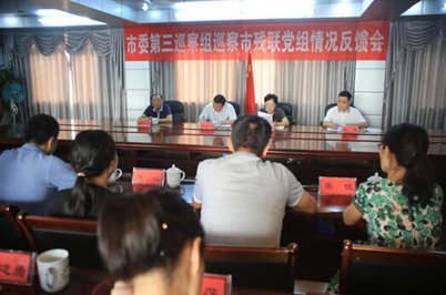 根据市委巡察工作领导小组的安排,2018年9月17日,市委第三巡察组向市残联党组反馈巡察情况。孙丽萍组长代表市委第三巡察组向市残联党组领导班子进行了反馈,市委组织部常务副部长王丽心就巡察整改工作提出要求,市残联党组书记、理事长张樑主持会议并作表态发言。